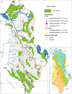 Albania is situated in the western part of Balkan Peninsula, on the eastern coast of the Adriatic and the Ionian Sea, which is one of the most water−rich regions of the world. The karst landscape in Albania covers about 2750 km2 consisting of nearly 24% of the countries territory. Karstic aquifers are the richest in the country. The total renewable karst water resources represent about 80% of the groundwater resources of Albania and nearly 80% of the population of the cities, including the capital Tirana, are supplied by karst water, and important resource is used for the production of the electricity. The sustainable management of karst water resource is difficult due to the high heterogeneity of karst aquifers in terms of type and development of hydraulic porosity, flow velocities, hydraulic head, recharge type and quantity, karst water quality, as well as to the high vulnerability to the human impact.