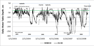 Jaeschke EM (2013) The hydrology of a Pocosin site in the Hofmann Forest, North Carolina, USA. Unpublished M.S. Thesis, North Carolina University, Raleigh, NC