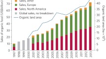 The IFOAM report not only acknowledges the sustainability achievements of organic agriculture to date, including positive effects on human health, soil fertility, and biodiversity, but also lists a number of challenges limiting the ability of the sector to have a major impact on sustainable food provisioning for the future (Arbenz et al. 2016). One of these challenges is limited uptake and spread of organic agriculture (i.e. low rate of conversion to organic and thus low impact due to niche status). Another relates to certification systems, which can be bureaucratic and expensive and unable to prevent all fraud. In addition, the environmental benefits in organic production are often not rewarded by the market or by policy instruments, while organic does not properly deliver on all relevant sustainability dimensions. The average lower yields in organic production are also mentioned as a problem (Arbenz et al. 2016). The lower yields in organic agriculture have been much discussed and in some countries such as Sweden there has long been a focus on increasing organic yields (Röös et al. 2018). The challenge is that a single-minded focus on increased yields may decrease the scope for organic production systems to deliver on other sustainability aspects. Since organic standards set minimum requirements (as opposed to high targets), it is possible to be certified organic and still not fulfil organic principlesFootnote 1 (Arbenz et al. 2017).