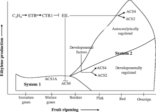 Barry CS, Llop-Tous MI, Grierson D (2000) The regulation of 1-aminocyclopropane-1-carboxylic acid synthase gene expression during the transition from system-1 to system-2 ethylene synthesis in tomato. Plant Physiol 123:979–986
