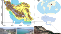 Dez Dam water basin is located in the Zagros Mountains, within the longitude and latitude of 48°31′–49°35′E and 33°39′–32°40′N. This water basin area is located in the Khuzestan Province, 25 km northeast of Dezful and 23 km northeast of Andimeshk and in the Dez-Karun water basin area. This dam is the largest dam in the Middle East (at the time of construction, 1957) and the third largest dam in the world. It also has an important role in the water-need supply in Khuzestan Province (Moshanir Consulting Engineering Company 2007). Figure 1 shows the Geographic location and population centers of this water basin.