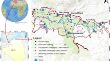 The Oued Djelfa-Melah watershed (Fig. 2) was located at 290 km south to the capital of Algeria (Algiers). It was under Mediterranean climate (semiarid type), with a cold and rainy winter and a hot, dry summer, with annual rainfall of around 336 mm. The inter-annual average temperature is 14.6 °C. The calculation of the water balance by the method of Thornthwaite revealed that evapotranspiration gives a value of 804.66 mm and an ETR of 278.12 mm (Chibane 2010) (Fig. 3).