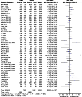 Zintzaras E, Lau J. Synthesis of genetic association studies for pertinent gene-disease associations requires appropriate methodological and statistical approaches. Journal of clinical epidemiology. 2008;61:634–45.