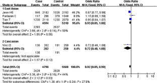 Zhang MY, Chen FY, Zhong H. Meta-analysis of human leukocyte antigen genetic polymorphisms and susceptibility to chronic myelogenous leukemia in Chinese population. Leuk Res. 2011;35:1564–70.