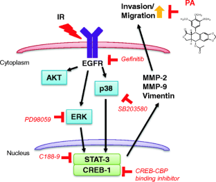Park CM, Park MJ, Kwak HJ, Lee HC, Kim MS, Lee SH, et al. Ionizing radiation enhances matrix metalloproteinase-2 secretion and invasion of glioma cells through Src/epidermal growth factor receptor-mediated p38/Akt and phosphatidylinositol 3-kinase/Akt signaling pathways. Cancer Res. 2006;66:8511–9.