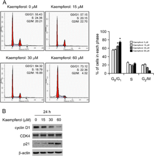 Huang WW, Tsai SC, Peng SF, Lin MW, Chiang JH, Chiu YJ, et al. Kaempferol induces autophagy through ampk and akt signaling molecules and causes g2/m arrest via downregulation of cdk1/cyclin b in sk-hep-1 human hepatic cancer cells. Int J Oncol. 2013;42:2069–77.