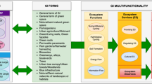 From this paper it can be concluded that multifunctionality can be underpinned with a conceptual framework that integrates a broad range of ecological and social aspects and thus meets the holistic thrust of GI planning. The suggested framework for multifunctionality hopefully can foster a discourse on potential linkages and further development of GI and ES approaches. Collaborating more closely could support closing gaps in both concepts. In the future, a combined GI and ES approach could be further developed into innovative planning concept that captures the complexity and dynamic of social–ecological systems in urban areas and supports policy objectives such as sustainable development, environmental justice, social cohesion, or resilience.