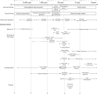 Armesto, J.J., D. Manuschevich, A. Mora, C. Smith-Ramirez, R. Rozzi, A.M. Abarzúa, and P.A. Marquet. 2010. From the Holocene to the Anthropocene: A historical framework for land cover change in southwestern South America in the past 15,000 years. Land Use Policy 27: 148–160.