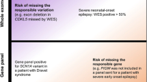 Many commercial gene panels for epilepsy are available. The number of genes included in those panels vary. Some of them are designed specifically for certain syndromes such as progressive myoclonic epilepsy and contain only a few genes; others are more comprehensive and include hundreds of genes. In addition, the genes included in each panel are not always overlapping. Unique genes can be seen in gene panels from different labs yet targeting the same diagnosis. Hence, it is difficult to systemically compare the yield of those panels. Nevertheless, the trend of diagnostic yield can be observed collectively (see review [54]). Several recent studies reported a diagnostic yield of gene panel (~ 40–80 genes) ranging from 15 to 28.5% [55,56,57,58]. Higher yield was seen in younger patients (23.2–52%) [55, 58] and patients with epileptic encephalopathy (50.6%) [57]. Therefore, when the clinical phenotype is very compelling, gene panels can be used as the first-tier investigation, especially if a rapid turn-around panel is available in the context of managing neonatal and drug-resistant epilepsy.