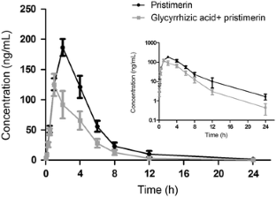 Yan G, Zhang H, Wang W, Li Y, Mao C, Fang M, et al. Investigation of the influence of glycyrrhizin on the pharmacokinetics of celastrol in rats using LC-MS and its potential mechanism. Xenobiotica. 2016;47(7):607–13. doi:10.1080/00498254.2016.1211773.