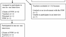 The six schools included in the project were located in four towns in inner regional and outer regional areas of NSW. The town names were replaced with codes to ensure the participating schools would not be identified. Schools ranged in size from 300 to 1100 students. Many of the students’ families were low of low socio-economic status (SES) and had significant and complex needs, such as drug and alcohol dependence, homelessness, unemployment, and mental health issues, that limited their capacity to support their children’s health and educational needs. There was also a high proportion of student families from Indigenous backgrounds. The key demographic features of the schools reported in Table 2 are based on self-reports from the stakeholders interviewed in each School. Each of the schools was assigned a code to assure anonymity.