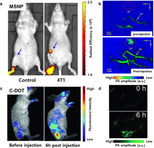Liu Z, Rong P, Yu L, Zhang X, Yang C, Guo F, et al. Dual-modality noninvasive mapping of sentinel lymph node by photoacoustic and near-infrared fluorescent imaging using dye-loaded mesoporous silica nanoparticles. Molec Pharm. 2015;12:3119–28.