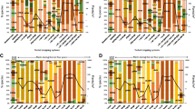 Weed community composition was also analysed through a functional approach (Bàrberi et al. 2018), focusing on species biological and ecological response traits that could potentially be affected by the treatments. For each weed species, values of Raunkiær life form, growth form, life span × regeneration form, Grime’s life strategy, specific leaf area, plant height, seed weight, seasonality of germination and affinity to soil nutrient conditions were assigned upon information from a dedicated weed trait database (Armengot et al. 2016; Bàrberi et al. 2018). A principal component analysis (PCA) on the species trait matrix was applied to detect redundant information and select the most informative traits. Three RLQ analyses (one per year) were run to highlight the combinations of traits with the highest covariance with combinations of agronomic factors. These analyses were based on three tables: the R-table (cover crop termination stage and glyphosate rate), the Q-table (with 6 selected traits resulting from the PCA: Grime’s life strategy, specific leaf area, plant height, seed weight, seasonality of germination, affinity to soil nutrient conditions), and the L-table (weed species cover at harvest in 2013; and at sunflower 5th leaf stage in 2014 and 2015). By using the fourth corner analysis (Dray and Legendre 2008), we tested whether weed species are distributed independently of the agronomic treatments and of their traits. In this respect, permutation models (with 999 permutations) were applied. RLQ and fourth corner analyses were performed with the library ade4 of R (Chessel et al. 2004).