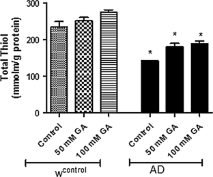 This study evaluated the effect of gallic acid on some selected biomarkers in Drosophila melanogaster model of Alzheimer’s disease (AD). Transgenic D. melanogaster expressing human amyloid precursor protein and β-secretase (BACE 1) genes were used as AD flies while wild type (Oregon strain) flies served as the normal control flies. Both fly strains were exposed to gallic acid in their diet. Thereafter, the flies were sacrificed and homogenized. The homogenates were assayed for reactive oxygen species (ROS), malondialdehyde (MDA) and total thiol contents, as well as the activity of catalase. Also the activity of cholinesterases (ChEs) and β-secretase (BACE-1) were quantified. Results showed that the AD flies had significantly higher ChEs and BACE-1 activity, ROS and MDA contents, as well as lower total thiol level and catalase activity compared to the normal control flies. However, these biochemical impairments in AD control flies were significantly ameliorated in AD flies treated with gallic acid. Therefore, this study has shown that gallic acid could ameliorate elevated ChEs and BACE-1 activities, as well as oxidative stress induced by β-amyloid generation in D. melanogaster model of AD. This therefore, suggests gallic acid as a promising nutraceutical for the management of AD.