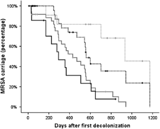 Marschall J, Muehlemann K. Duration of MRSA-carriage, according to risk factors for acquisition. Infect Control Hosp Epidemiol. 2006;27(11):1206–12.
