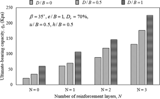 Ultimate bearing capacity of footing for reinforced case (kPa)
