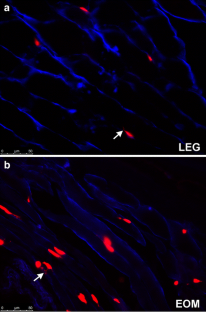 Stuelsatz P, Shearer A, Li Y, Muir LA, Ieronimakis N, Shen QW, Kirillova I, Yablonka-Reuveni Z. Extraocular muscle satellite cells are high performance myo-engines retaining efficient regeneration capacity in dystrophin deficiency. Dev Biol. 2015;397:31–44.