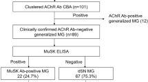 Leite MI, Jacob S, Viegas S et al (2008) IgG1 antibodies to acetylcholine receptors in ‘seronegative’ myasthenia gravis. Brain 131(Pt 7):1940–1952. doi:10.1093/brain/awn092