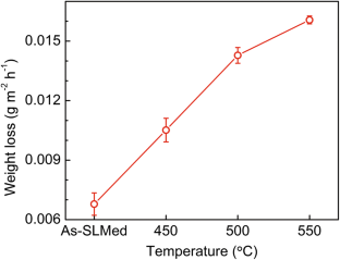 This work investigates the corrosion behavior of AlSi10Mg alloy produced by selective laser melting (SLM) and the counterparts heat-treated at 450–550 °C in 3.5 wt% NaCl solution. Electrochemical measurements and weight loss tests together with microstructural characterizations were conducted. The SLM-produced alloy displays a microstructure with a continuous network of Si particles, exhibiting superior corrosion behavior. After heat treatment, the Si particles are coarsened and isolated and Al matrix dissolves into their surrounding area, thereby degrading the corrosion resistance properties. Therefore, the corrosion resistance of AlSi10Mg alloy degrades with increasing the heat treatment temperature.