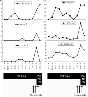 Syrigos K, Tsagouli S, Grapsa D. Nivolumab-induced recurrence of rheumatoid arthritis in a patient with advanced non-small cell lung cancer: a case report. Ann Intern Med. 2016;165:894–5. https://doi.org/10.7326/L16-0137.