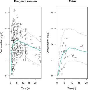 Pregnant women and their fetuses are exposed to numerous drugs; however, they are orphan populations with respect to the safety and efficacy of drugs. Therefore, the prediction of maternal and fetal drug exposure prior to administration would be highly useful.