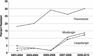 Pfaller MA, Messer SA, Moet GJ, Jones RN, Castanheira M. Candida bloodstream infections: comparison of species distribution and resistance to echinocandin and azole antifungal agents in intensive care unit (ICU) and non-ICU settings in the SENTRY Antimicrobial Surveillance Program (2008–2009). Int J Antimicrob Agents. 2011;38(1):65–9. doi:10.1016/j.ijantimicag.2011.02.016.