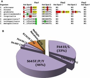 Johnson ME, Katiyar SK, Edlind TD. A new Fks hotspot for acquired echinocandin resistance in yeast, and its contribution to intrinsic resistance of Scedosporium species. Antimicrob Agents Chemother. 2011;55(8):3774–81. doi:10.1128/AAC.01811-10.