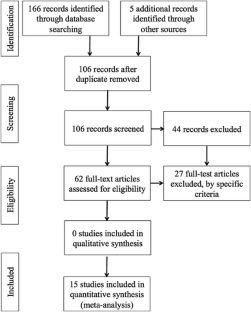 A computerized search was conducted in ADONIS, ERIC, SPORTDiscus, EBSCOhost, Google Scholar, MEDLINE and PubMed databases, and references of original studies and reviews were searched for further relevant studies. The analysis comprised 510 subjects and 85 effect sizes (ESs), nested with 26 experimental and 11 control groups and 15 studies.