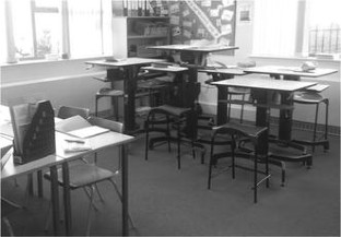 Koskelo R, Vuorikari K, Hanninen O. Sitting and standing postures are corrected by adjustable furniture with lowered muscle tension in high-school students. Ergonomics. 2007;50(10):1643–56.