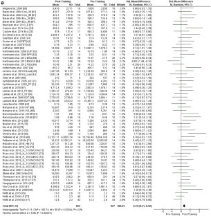The search yielded 1443 articles, of which 54 met the inclusion criteria (59 intervention groups). Resistance training increased RFD measured to both early (e.g., 50 ms; standardized mean difference [95% CI] 0.58 [0.40, 0.75]) and later (e.g., 200 ms; 0.39 [0.25, 0.52]) times from contraction onset, as well as maximum RFD (RFDmax; 0.35 [0.21, 0.48]). However, sufficient data for sub-analyses were only available for RFDmax. Significant increases relative to control groups were observed after training with high-speed (0.54 [0.05, 1.03]), slow-speed with intent for fast force production (0.41 [0.20, 0.63), and movement pattern-specific (0.38 [0.17, 0.59]) exercises only. No clear effect was observed for slow-speed without intent for fast force production (0.21 [0.00, 0.42], p = 0.05) or non-movement-specific (0.27 [− 0.32, 0.85], p = 0.37) exercises. Meta-regression did not reveal a significant difference between sexes (p = 0.09); however, a negative trend was found in women (− 0.57 [− 1.51, 0.37], p = 0.23), while a favorable effect was found in men (0.40 [0.22, 0.58], p < 0.001). Study duration did not statistically influence the meta-analytic results, although the greatest RFD increases tended to occur within the first weeks of the commencement of training.
