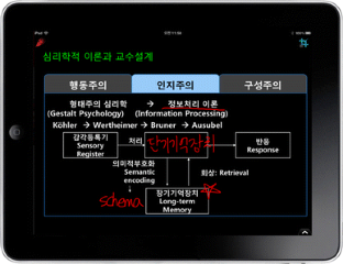 Recently, projected electronic slides have been the most common tool used in classrooms. However, electronic projection slides, such as PowerPoint slides, do not provide sufficient flexibility to augment the displayed materials; therefore, instructors are not able to adjust their instruction instantly in response to the audience reaction and needs. Accordingly, many studies have suggested the use of tablet PC-based presentation tools in order to enable real-time handwritten annotations on predeveloped materials. Based on this rationale, the present study was designed in order to examine the effects of a tablet device (iPad in this study)-based instructors’ digital handwriting on students’ learning. Participants were 36 undergraduate students: half of the students were instructed using the typical PowerPoint-based presentation without the digital handwriting of the instructor, whereas the other half of the students were instructed using a tablet-based presentation with the instructor’s digital handwriting. Results from a MANCOVA revealed a significant main effect for the presentation mode. Two follow-up ANCOVAs revealed that students in the tablet-based instructor’s digital handwriting condition significantly outperformed the students in the animated PowerPoint-based presentation lecture for conceptual knowledge acquisition, despite the fact that there was no statistical difference in factual knowledge acquisition.