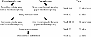Social media can benefit English as a foreign language (EFL) learning, but learners need a deliberate approach to pursue deeper learning. To this end, the aim of this study was to design a prewriting activity using a mobile-based concept map to assess participants’ writing performance in different aspects of writing. The designed prewriting activity comprised (1) structuralized private knowledge, (2) explicit knowledge affordance, and (3) consolidated social activities. To evaluate the effects of the prewriting activity, an EFL prewriting experiment was conducted. In this experiment, 80 participants in a high school in Taiwan were evenly assigned to a control or experimental group. The participants’ writing essays and learning perceptions were collected, and the analysis results indicated that (1) a significant difference was found in the aspects of communicative quality, linguistic accuracy, and linguistic appropriacy, and (2) the questionnaire statistics aligned with similar findings that the prewriting activity helped learners’ writing from communicative quality and social collaboration perspectives.