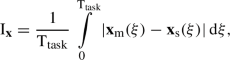 Next, tracking error index of position \(\textrm{I}_{\textbf{x}}\) and force \(\textrm{I}_{\textbf{f}}\) and time to complete the task \(\mathrm {T_{task}}\) are obtained. Such metrics are calculated as follows: