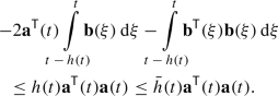 [39] For vector functions \({\textbf{a}}(. )\), \({\textbf{b}}(. )\) and a variable value h(t) with \(0\le h( t )\le {\bar{h}}\), the following expression is valid: