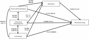 One-hundred and sixteen individuals who identified as sexual minorities completed a survey study assessing perceived discrimination, internalized homonegativity, concealment, rumination about sexual minority stigma, and disordered eating.