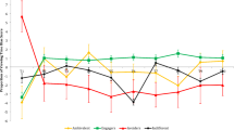 We then used a hierarchical multiple regression to examine the effects of attentional bias scores on ORTO-15 scores controlling for change in hunger levels pre- and post-testing. Specifically, change in hunger level was entered at the first step in predicting ORTO-15 and AB scores for healthy food-related words added to the equation in the second step. At step one, change in hunger level was shown to significantly predict ORTO-15 scores, F (1, 78) = 9.21, p < 0.01, R2 = 0.11, adj R2 = 0.09. At step 2, adding AB scores for healthy food-related words to change in hunger level also significantly predicted ORTO-15 scores, F (2, 77) = 7.61, p < 0.001, R2 = 0.17, adj R2 = 0.14. The addition of AB scores for healthy food-related words significantly increased the proportion of variance explained in ORTO-15 scores, ∆F (1, 77) =5.48, p < 0.05, ∆R2 = 0.06. When both predictor variables were included in the equation both change in hunger level (β = − 0.32, 95% CIs [− 3.85, − 0.79]) and AB scores for healthy food-related words (β = − 0.24, 95% CIs [− 0.02, − 0.002]) were shown to both predict ORTO-15 scores (ps < 0.05) and uniquely accounting for 10% and 6%, respectively, of the variation in ORTO-15 scores (see Table 3).