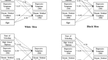 Data came from waves 7, 8, and 10 of the Health and Retirement Study (HRS), which were collected in 2004, 2006, and 2010, respectively. The study followed 37,495 white and black men and women above age 50 for up to 6 years. This number included 12,495 white men, 15,581 white women, 3839 black men, and 5580 black women. Individuals reported their depressive symptoms (Center for Epidemiological Studies-Depression (CES-D) 11), insomnia, physical inactivity, BMI, and SRH across all waves. Multigroup structural equation modeling (SEM) was used to compare black men, black women, white men, and white women for the effects of education and income in 2004 on sustained health problems from 2004 to 2010.