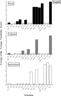Tables 4, 5 and 6 are examples of sessions that consist of 3 different responses (Tables 7 and 8 consist of 6 and 10 responses, respectively); however, the average variability score is different based on the within-session response patterns.