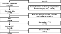 Zhao C, Jiang W, Gao Y, Niu W, Zhang X, Xin L (2017) Risk factors for lymph node metastasis (LNM) in patients with papillary thyroid microcarcinoma (PTMC): role of preoperative ultrasound. J Int Med Res 45:1221–1230