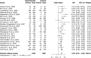 Four electronic databases [MEDLINE (via PubMed), Scopus, Cochrane Library, PROSPERO] were searched for relevant literature until July 29th 2020. Cochran’s Q test was applied for the assessment of heterogeneity. The random-effects model was applied by calculating the odds ratio (OR) and 95% confidence interval (CI) for each study. Publication bias was estimated with Egger’s linear regression test.