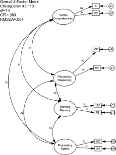 Keith, T. Z., Fine, J. G., Taub, G. E., Reynolds, M. R., & Kranzler, J. H. (2006). Higher order, multisample, confirmatory factor analysis of the Wechsler Intelligence Scale for Children—Fourth Edition: what does it measure? School Psychology Review, 35(1), 108–127.