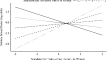 Our results may have some clinical implications. While the overall pattern of whether the treatment of testosterone leads to an increase of men’s libido is mixed (Petering and Brooks 2017), we did not find compelling evidence for a link between testosterone levels and sexual desire or sociosexual orientation in healthy men. Whereas our results cannot answer the question whether testosterone prescriptions lead to clinically significant benefits for men with sexual dysfunction, they do challenge the underlying assumption that natural changes in testosterone are related to an increase in sexual desire or sociosexual orientation. While we only detected between-men interaction effects of testosterone and cortisol, we still think that it might be interesting for future clinical studies to consider that testosterone and cortisol might be mutually related to men’s libido. A prescription of hormones does lead to larger changes in hormone levels than naturally occurring variation in the current study (although we already interpret the natural variation of sometimes more than 2 SDs within-participant as meaningful), thus possibly also leading to within-subjects effects. As a consequence, it should be investigated whether actively trying to reduce or suppress cortisol levels, while raising testosterone levels, might increase men’s libido, based on assumptions of the Dual Hormone Hypothesis.