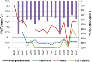 Varni M (2005) Evaluación de la recarga al acuífero del Azul: valores medios y variaciones temporal y espacial [Evaluation of the Azul aquifer recharge: mean values and temporal and spatial variations]. Doctoral Thesis, Faculty of Sciences, Engineering and Surveying, National University of Rosario, Rosario, Argentina