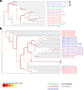 Seago AE, Giorgi JA, Li J, Slipinski A (2011) Phylogeny, classification and evolution of ladybird beetles (Coleoptera: Coccinellidae) based on simultaneous analysis of molecular and morphological data. Mol Phylogenet Evol 60(1):137–151