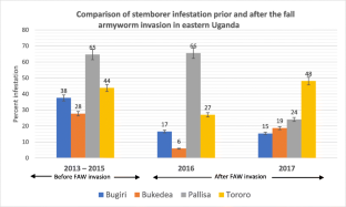 Hailu, G., Niassy, S., Bässler, T. et al. Could fall armyworm, Spodoptera frugiperda (J. E. Smith) invasion in Africa contribute to the displacement of cereal stemborers in maize and sorghum cropping systems. Int J Trop Insect Sci 41, 1753–1762 (2021). https://doi.org/10.1007/s42690-020-00381-8