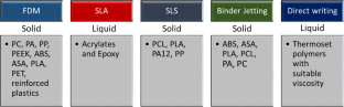 Ligon SC, Liska R, Stampfl J, Gurr M, Mülhaupt R (2017) Polymers for 3D printing and customized additive manufacturing. Chem Rev 117(15):10212–10290. https://doi.org/10.1021/acs.chemrev.7b00074