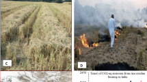 Global warming is an emerging serious threat to agriculture sector. Greenhouse gases like CH4, CO2 and N2O trap the short wave radiation, causing a net increase in the global temperature. The comparative assessment of different crops should be made not only based on yield potential but also their emission intensity, i.e. net return to the environment. For instance, the production of 1 kg rice returns 0.71 kg CO2 equivalent (CO2-eq) emissions to the environment as compared to 0.27 kg CO2-eq emissions per kg production of other cereals (Source: FAOSTAT). In addition to this, huge amount of residue generated from rice and sugarcane crops creates management challenges and farmers burn the residue for timely sowing of wheat especially in IGP. The total carbon present in rice residue converts to CO2 (70%), CO (7%), CH4 (0.66%) and particulate matter, while 2.09% nitrogen to N2O gas upon burning (NPMCR 2014). The burning of crop residue is not only associated with air pollution but also with loss of precious nutrients retained in the crop residue. During the crop residue burning, almost 100% carbon, more than 90% nitrogen, 20–25% phosphorus and potassium and about 60% sulphur are lost in the form of various gases and particulate matter (Singh et al. 2008). The gases emitted from crop residue burning can cause radiation imbalance, leading to harmful effects such as more aerosols in the region, acid rain and ozone layer depletion. Hence, like in other crops, farmers should adopt residue management and RCTs in rice cultivation as well for a sustainable farming. Ma et al. (2019) found that global warming potential (GWP) and greenhouse gas intensity (GHGI) reduced by 12.6–59.9% and 10.5–65.8%, respectively, by returning the wheat crop waste to the soil in the form of straw, straw-derived biochar and straw with straw-decomposing microbial inoculants over no straw return practice. Sapkota et al. (2017) and Chen et al. (2021) highlighted the use of no-tillage with residue retention practice to combat the global warming potential in rice–wheat and rice–rice cropping systems. The return of crop residue to the soil should be in the form of mulching as residue incorporation into soil can raise CH4 emissions by 3.2–3.9 times of straw-induced SOC sequestration rate, thereby worsening the GWP rather than mitigating climate change (Xia et al. 2014). In a different study, Pittelkow et al. (2014) found that potential yield of rice along with minimal yield-scaled GWP is achievable by using the optimal doses of N-fertilizer. Nemecek et al. (2012) highlighted the lowest GWP for sugar crops (< 0.05 kg CO2-eq kg−1) followed by root crops (< 0.15 kg CO2-eq kg−1) and vegetable and fruits (< 0.35 kg CO2-eq kg−1). Cereals (except rice) and pulses were found to have medium GWP (< 0.6 kg CO2-eq kg−1), while oil crops (cotton, peanuts) and rice exhibited the highest GWP (1.2–2.4 kg CO2-eq kg−1). Needless to say that it would be beneficial to the environment and agro-ecosystem to replace the higher GWP posing cereal crop with vegetable, sugar or root crops in cereal–cereal cropping system. The better water management techniques replacing the continuous flooding in rice cultivation might be effective to reduce the GWP further from rice-based cropping systems (Jiang et al. 2019a).