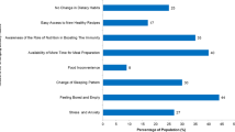 Regarding the impact of the lockdown on food frequency consumption, an important proportion of respondents reported consuming bread, coffee/tea, vegetables, olive oil, beans and legumes, and fresh fruit during this period (Supplementary Table 1). In terms of food variety and diversity, the results of this study revealed that the food proportions consumed by the respondents substantially met the updated MD recommendations [27]. Previous studies have created graphical representations of the Moroccan population’s diet (adults, women, and men) living in urban and rural areas, taking into account various socio-demographic characteristics as factors likely to influence their eating behaviors, including food consumption [28]. Given the complexity and variety of foods, as well as the lifestyles and social customs, it has been reported that the Moroccan population still follows the MD [29, 30]. This confirms that people did not change their good eating habits during the pandemic because they are already on a rich, varied, and healthy diet and also to take more care of their health. The Moroccan daily food pattern consists of cereals, vegetables, fresh fruit, red meat, fish, legumes, olive oil, and other vegetable oils [31,32,33]. Our findings are comparable to those reported by Sumalla et al. where most respondents did not change their eating habits during the lockdown [22]. Furthermore, Ben Hassen et al. declared that despite the seriousness of the problem, most participants expressed health concerns by cutting back on unhealthy food, such as sweets and fast food, during the pandemic to boost the immune system [4]. In contrast, Celorio-Sardá et al. found an increase in the consumption of fruit, vegetables, legumes, fish, eggs, and yogurt among participants [34].