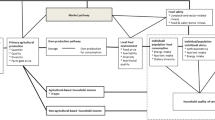 Six asset classes are typically considered when discussing household dietary diversity. These are human, physical, financial, social, natural and technological assets. A review of past studies shows that most studies on household diet diversity have often grouped physical and natural assets and called them agricultural assets. Such an asset class includes farmland, farming implements, livestock, farm labour, forests, grazing land, irrigation equipment and water resources. Mixed results have been reported on the effect of agricultural resource ownership on household dietary diversity. Some studies [8,9,10, 23] have reported that ownership or access to natural resources is a major determinant of household diet diversity in rural areas. These findings suggest that encouraging subsistence farming households to produce various crop and animal species can be an effective strategy to improve dietary diversity [18, 22]. On the contrary, other studies fail to find a statistically significant effect of agricultural assets [21] while others could not find a positive relationship between own agricultural assets and diet diversity [16]. Mulenga et al. [12] report that agricultural asset ownership and use only has an impact on household diet diversity if asset endowment enables the production of healthier crops which were not possible or restricted before. Chegere and Stage [5] also explain that the contradictory results are because an unattainable degree of production diversification is often required to produce a significant move in household diet diversity.