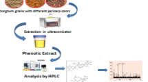Phenolic acids, flavonoids and tannins are widely reported in red sorghum leaf sheaths (Table 3). Ferulic, tannic and p-coumaric acids are the major phenolic acids detected in red sorghum leaf sheaths with ferulic acid (186.0–10,369.0 µg/g) being the predominant phenolic acid [15]. Apart from anthocyanidins, other flavonoids including naringenin, apigenin and luteolin are widely reported in leaf sheath [15, 63]. Abugri et al. [15] reported luteolin (133.0–58,434.0 µg/g) and apigenin (9.1–3066.3 µg/g) as the major flavone while catechin gallate (323.8–2135.2 µg/g) and epigallocatechin (184.9–1828.3 µg/g) are the major flavanols. Naringenin is a bioactive compounds of subclass of flavanone, recognized for its potential biological activities among them antioxidant, antitumor, antiviral, antibacterial, anti-inflammatory, antiadipogenic and cardioprotective effects [64]. Naringenin (130.0 µg/g) has been reported as the major flavanone in the red leaf sheath of sorghum [30].